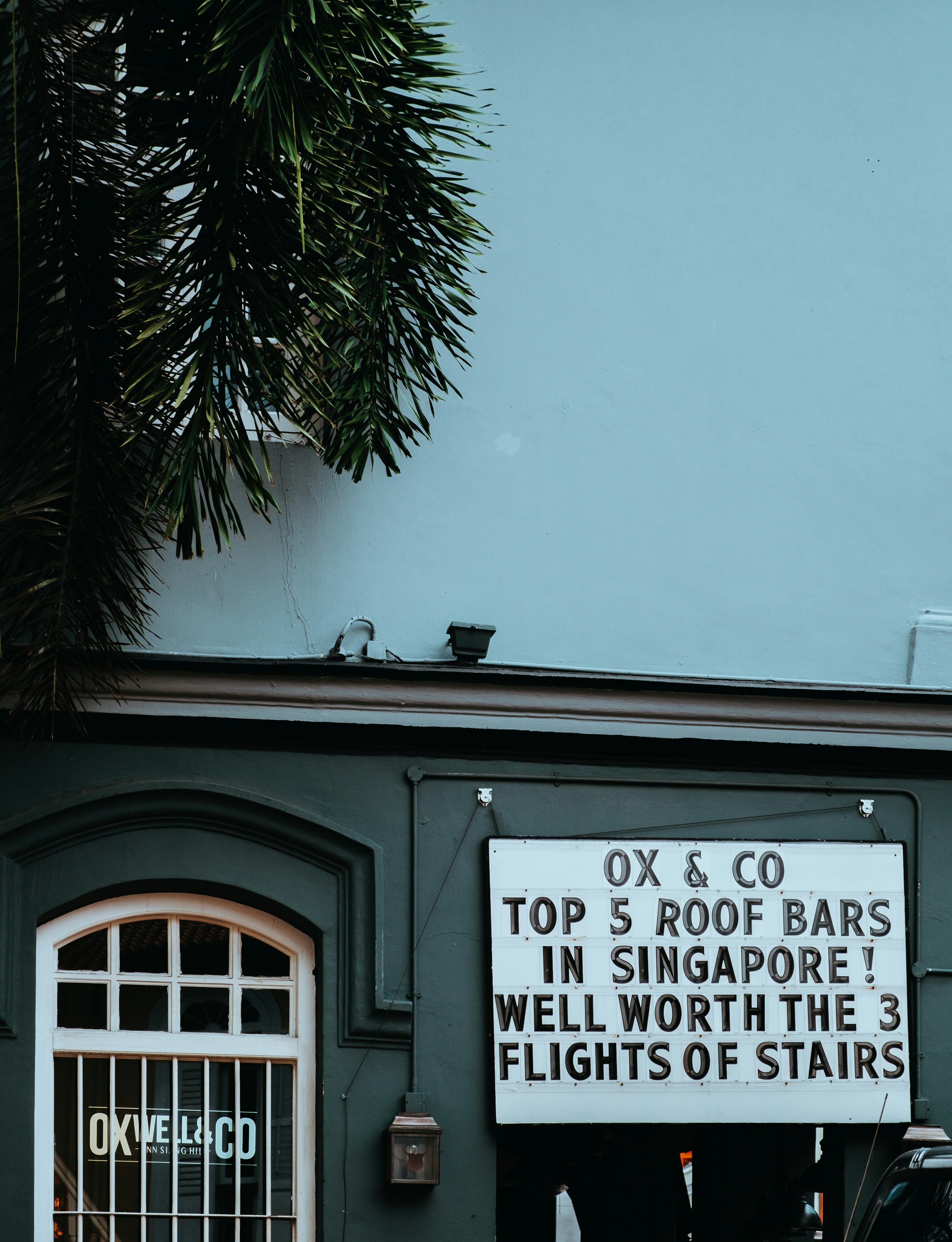 grey house with signage board