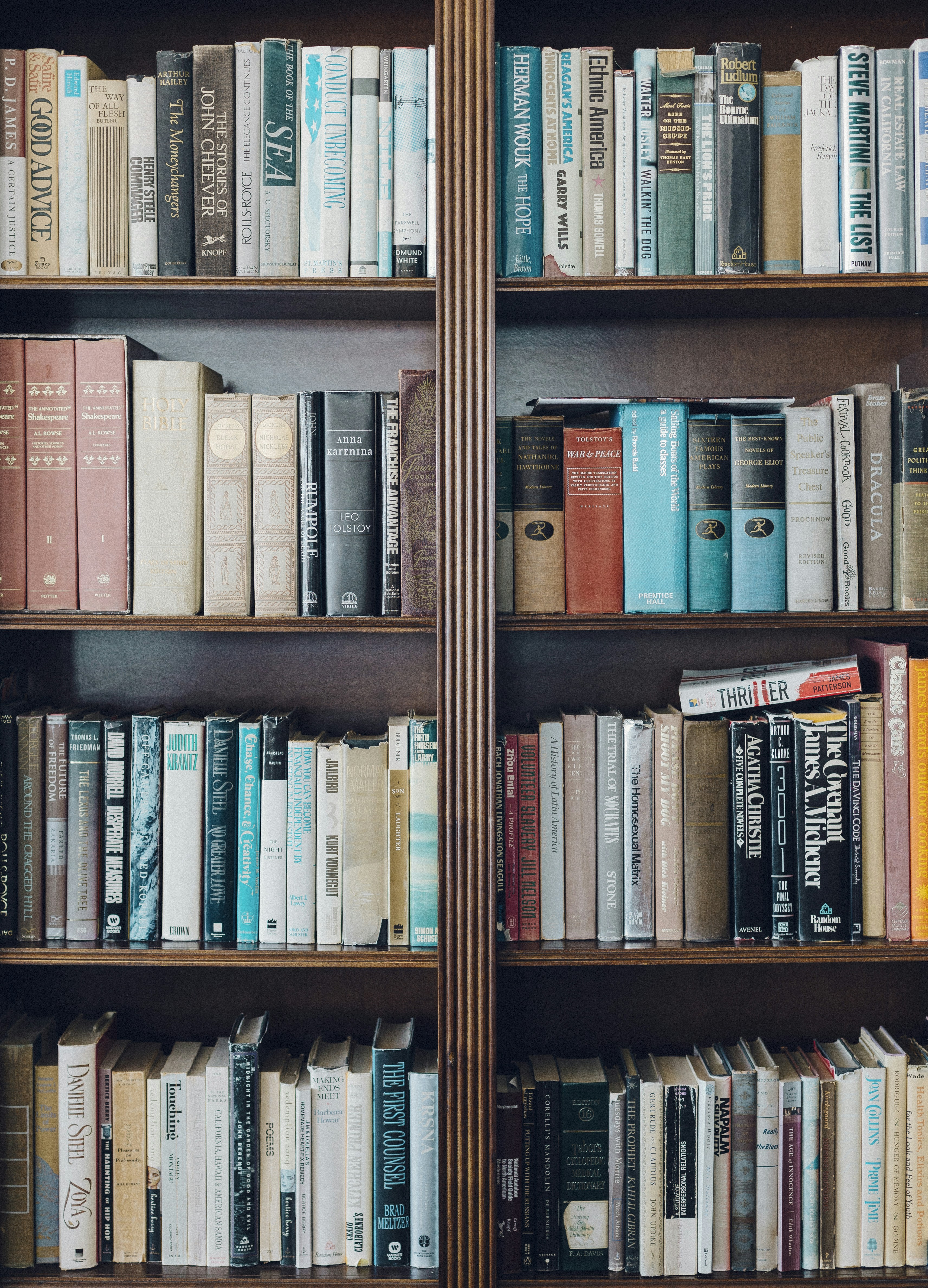 assorted-title book in bookcase